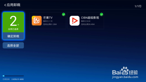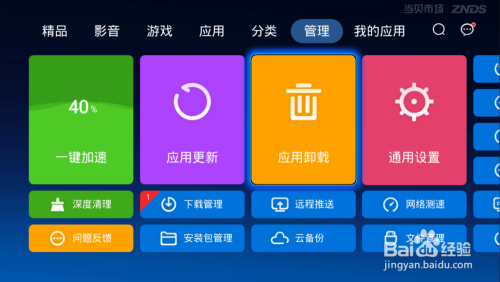 软件安装过多会占用盒子内存,从而导致空间不足。打开盒子中当贝应用市场的管理,点击应用卸载
