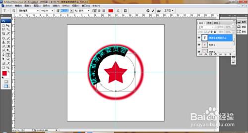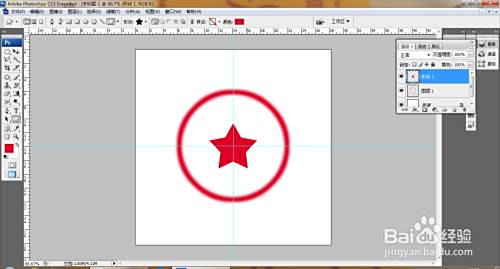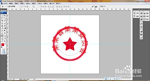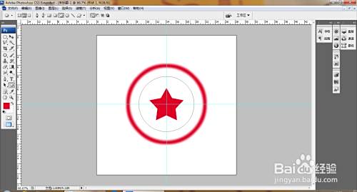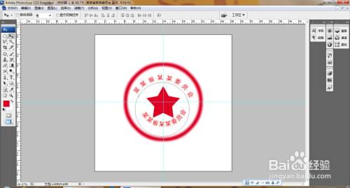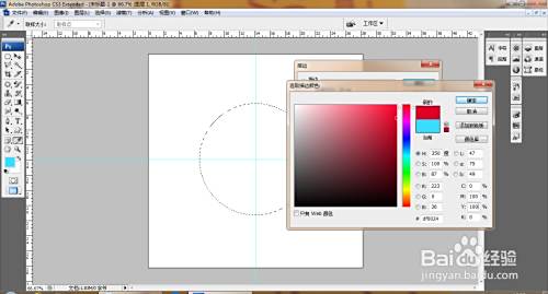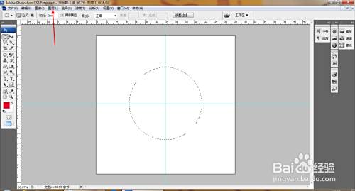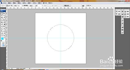 打开标尺线,选择椭圆形选区工具,按shift键绘制圆形选区,如图