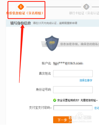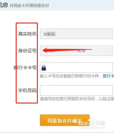 2然后我们需要输入自己的省份证信息和需要添加一张银行卡才能实名支付宝。