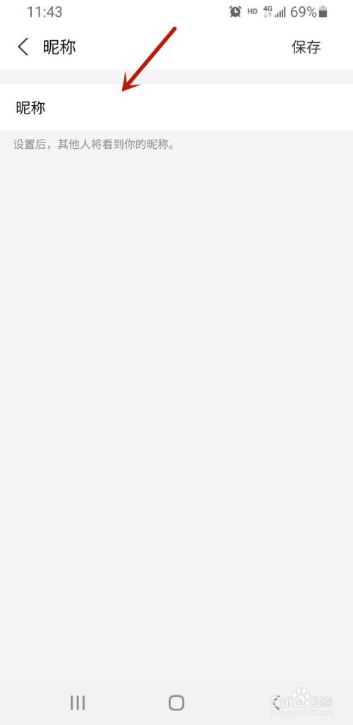 在昵称设置页面中输入想要的名字,然后右上角点击【保存】即可。