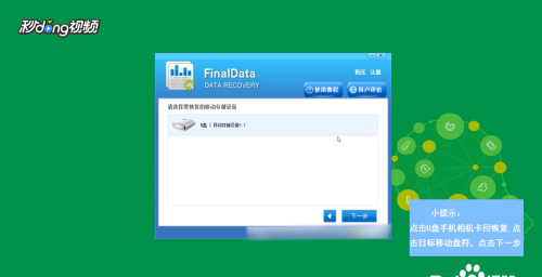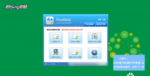 1首先下载一个免费数据恢复软件,比如final date。然后把sd卡从手机上取下来,用读卡器连接电脑,打开软件,首页点击"U盘手机相机卡恢复"。