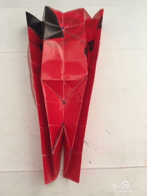 第四步 连上图形之后 拿起来 向中间聚拢一下 然后从下面的三角处 折出小火柴人的腿部