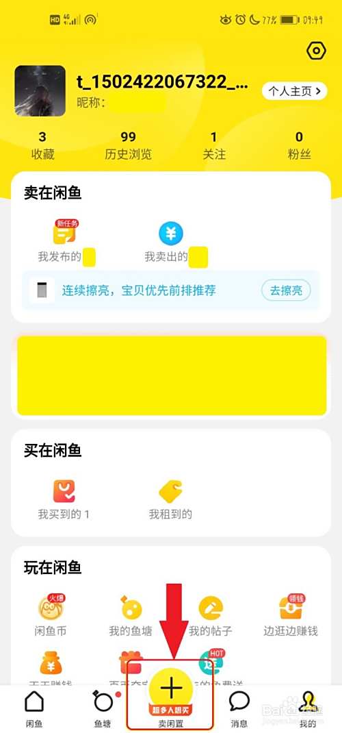 下载打开闲鱼app——点击下方卖闲置