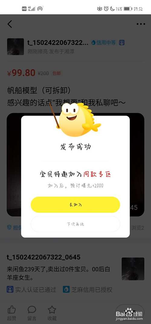 编辑介绍商品,比如购买时间、老旧程度、有无损坏、转手原因……还要标上价格(包邮更好)