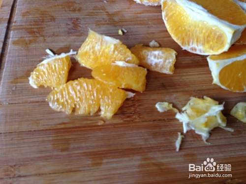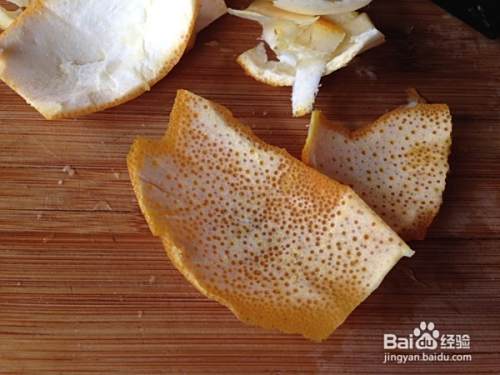 把橙子皮用快点的刀子去掉白瓤,白瓤有苦味影响口感,不可以省略