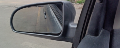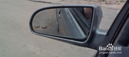 注意保持慢速,继续后退,观察左后视镜,库线进入视线:
