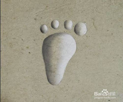 2.脚印左侧用白色铅笔均匀的抹上一层可爱简笔画白调子,用棉签适当的过度,一定要柔和均匀。