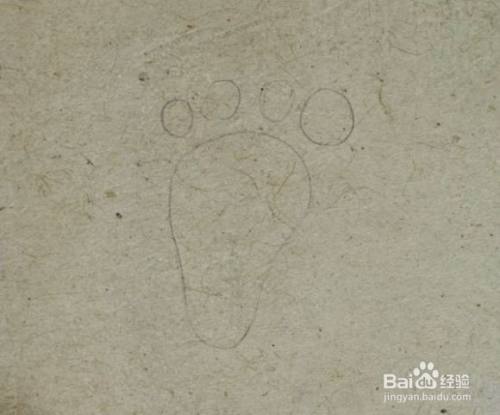 先画一个葫芦状的轮廓,注意要圆,圆才显得可爱。加上四个小圆脚趾头,大指头稍大一些,其它趾头差不多大小,注意,这里只画了四个脚趾头,是因为动物例如猫狗通常只有四个脚趾头,这里是人类拟动物化。