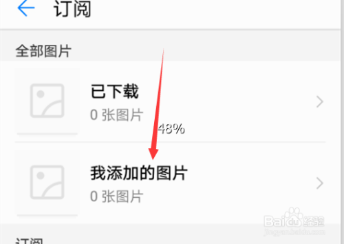 选择“订阅”。在订阅中选择“我添加的图片”如图