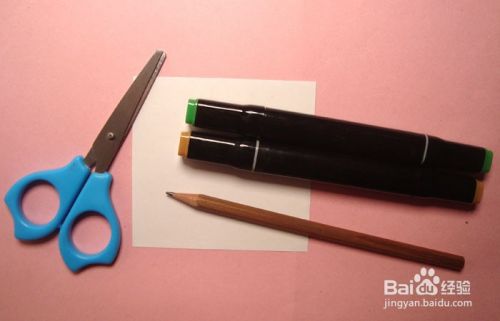 准备好,制作苹果树的图形剪纸手工的材料和工具,有白纸、正方形卡纸、马克笔、铅笔,剪刀,如下图所示。