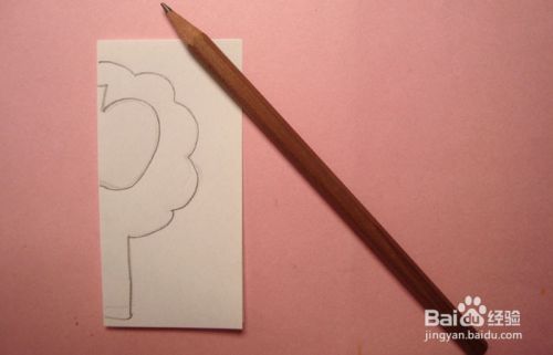接着,把正方形卡纸对折一半。并用铅笔在白纸上,画出苹果树的图形,根据对称图形,这里画出半个图形,如下图所示。