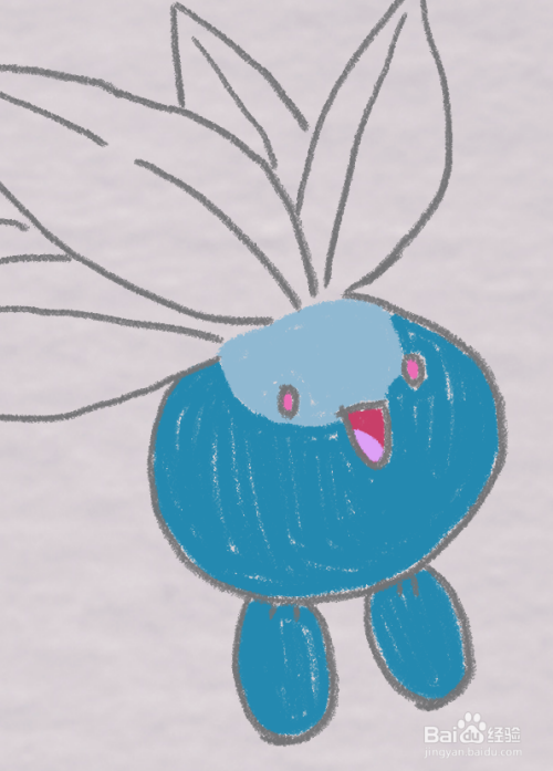第五步,头部和脚涂上湛蓝色,脑门上颜色浅一点