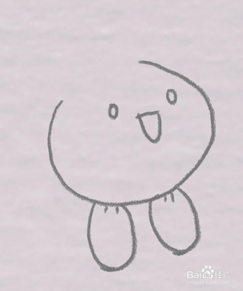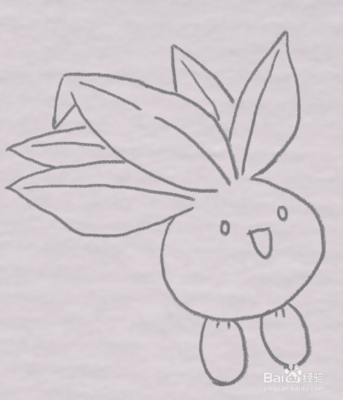 第三步,头顶的中间位置画一片大的叶子,旁边一片小叶子