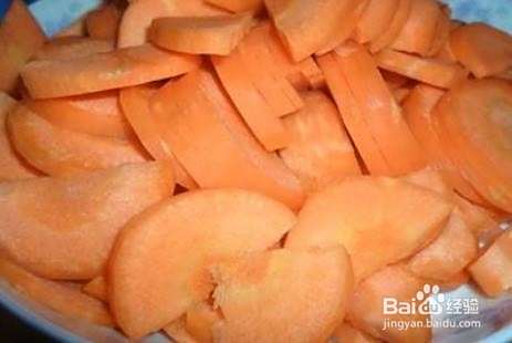 取新鲜的胡萝卜1~2根,去掉根部后洗净切片,然后用温水泡10~15分钟,最后捞出沥干备用。
