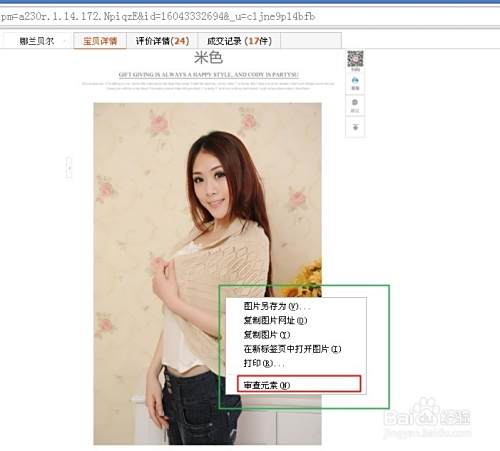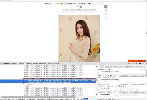 打开谷歌浏览睡兼欠器,打开产品网址并找到需要偷图的淘宝宝贝详情页的产品图,在图片上点击右键,选择“审查元素”,下浏览器下方会弹沫囊出此页面的代码,并露海显示产品图片所在位置的链接,如图高亮显示。