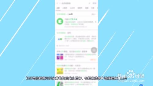 打开微信搜索可以合并收款码的小程序,在搜索结果中选择程序并打开。