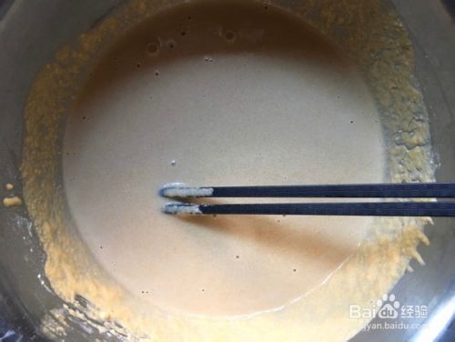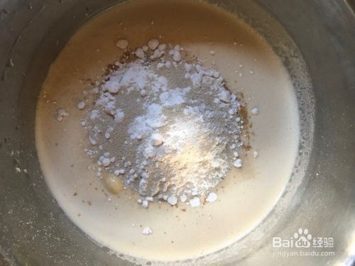 3将米糊倒入盆中,再依次放入红糖、面粉、酵母;