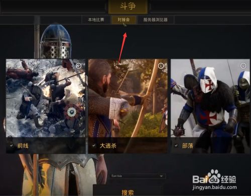 其中本地比赛是单人游戏,我们点击“对接会”,其中又有三种模式,分别是“前线”、“大逃杀”、“部落”,我们可以默认的将三种都选上。