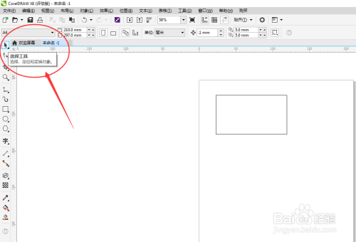 【注意事项:“选择工具”在CorelDRAW 中,左侧工具栏第一项;选中刚刚第四步所画的矩形图形;】