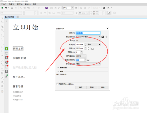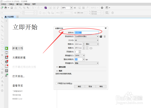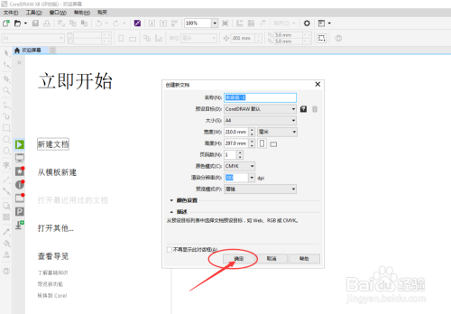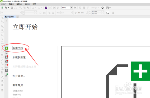 【注意事项:“新建文档”在CorelDRAW 主页面左方;】