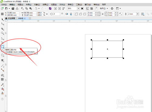 【注意事项:“矩形工具”在CorelDRAW 中,左侧工具栏第七项;运用鼠标,在右方文本里面鼠标左键画上任意矩形图形即可;】