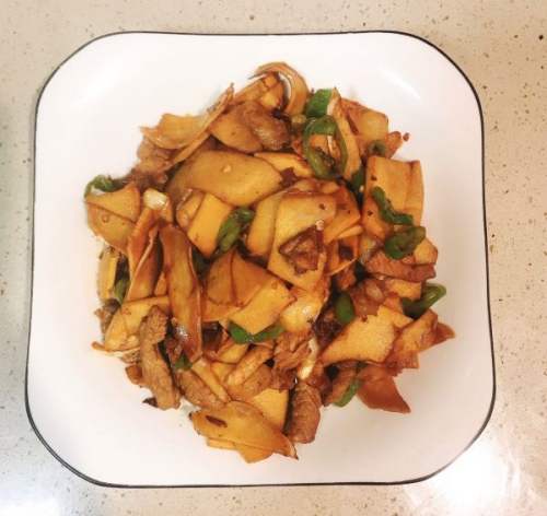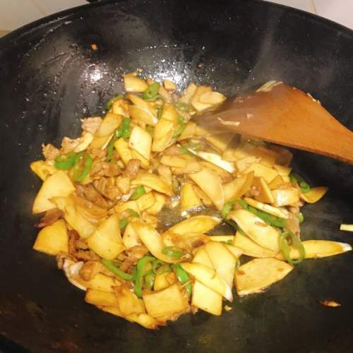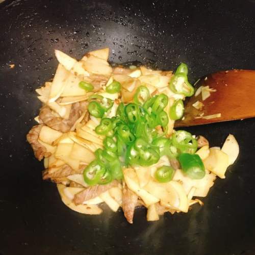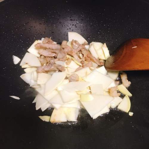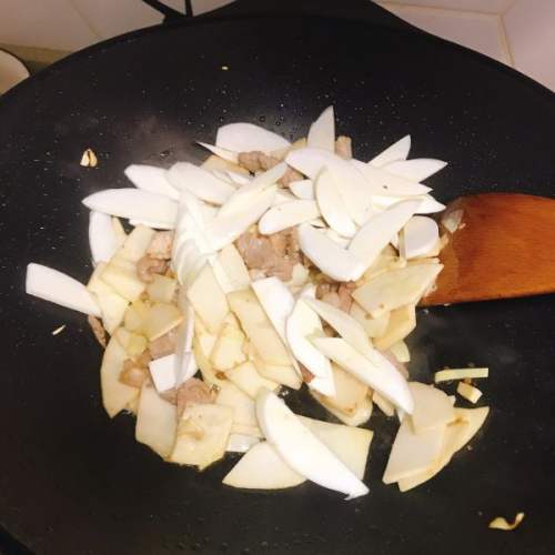 5然后放入笋翻炒均匀,大概翻炒半分钟。