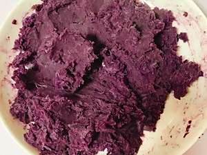 紫薯洗干净去皮切块上锅蒸熟,加入一勺炼乳,用叉子压成泥