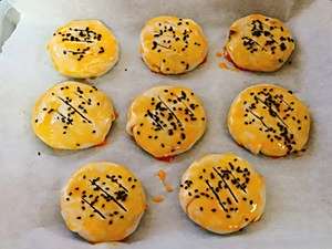 放上铺好油纸的烤盘上,刷上鸡蛋黄液