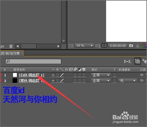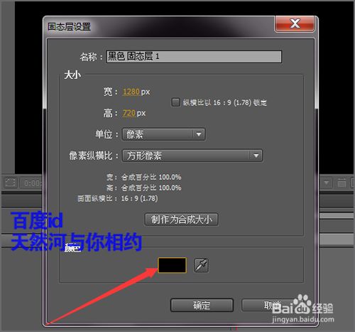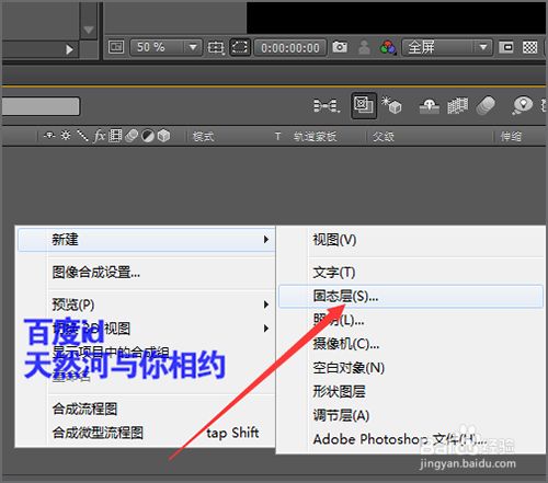 接着在时间线下面点击右键新建固态层。接着在弹出的固态层的颜色保持默认即可。然后点击确定。再新建一个固态层,这次把它的颜色更改一下,点击上面的黑色,把它的颜色选择为白色。然后点击确定。