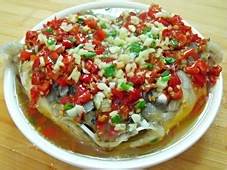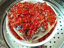 3、铺上剁椒蒸八分钟虚火蒸两分钟。