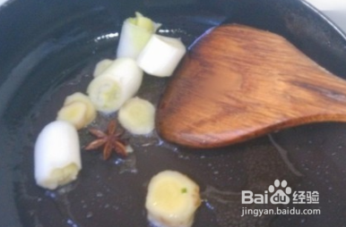锅里加入少许油,放入生姜、大葱、八角炒香