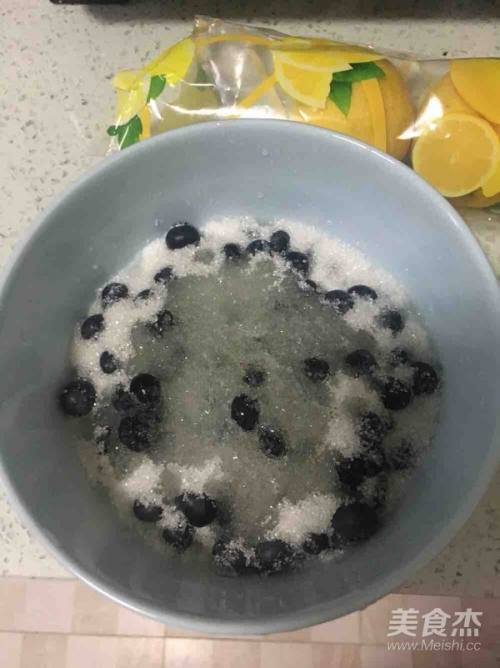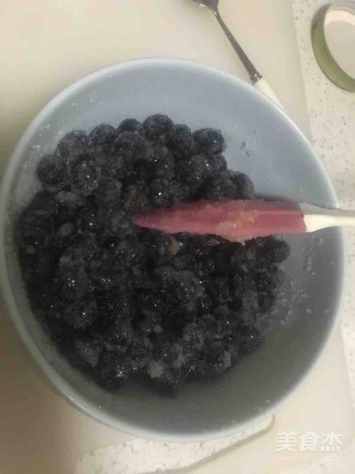 腌制完后搅拌均匀,把四分之一的蓝莓压碎