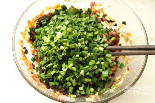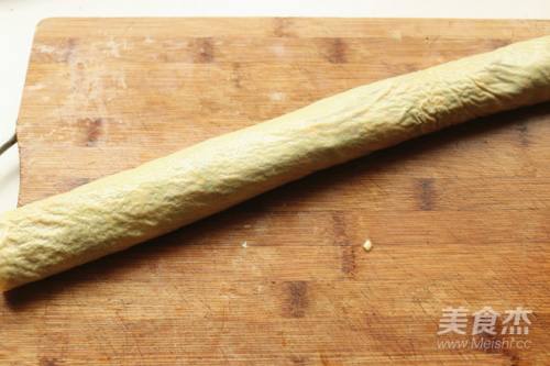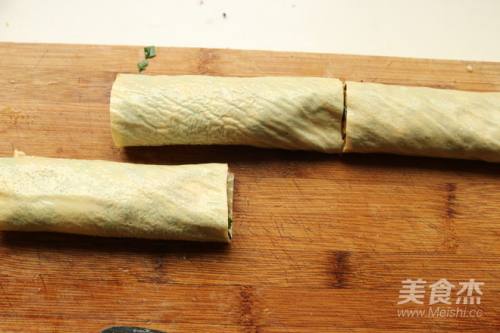 9切成段,尽量不要太短,不然馅料在煎的时候容易漏出来。