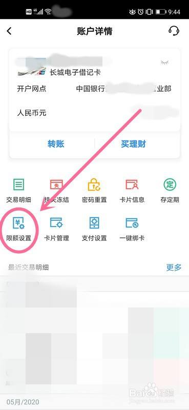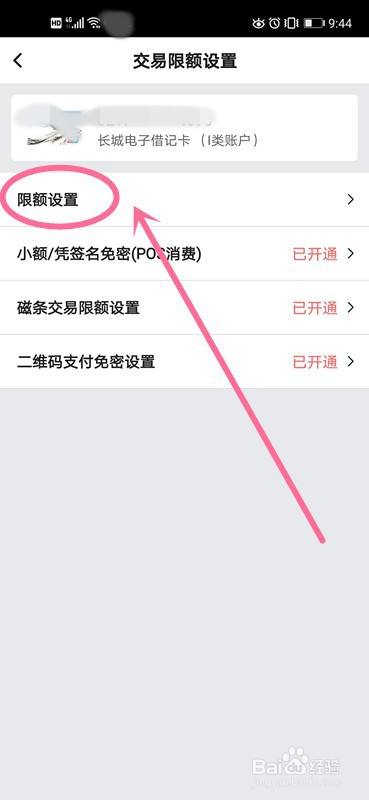 在账户详情界面,点击中部位置的“限额设置”。
