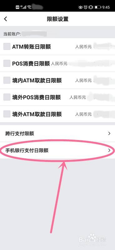 在限额设置界面,点击最下方的“手机银行支付日限额”。