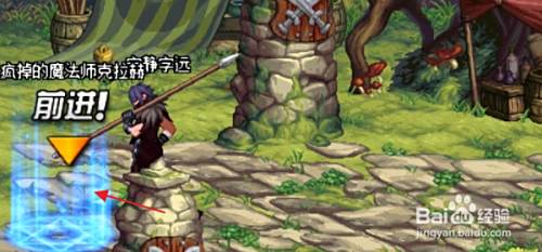 接下来,我们沿着虚线走,一壶就会看见疯掉的魔法师克拉赫的传送光圈,我们进入传送光圈。