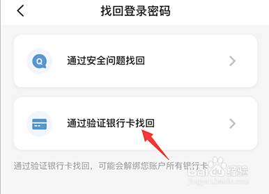 这时,我们可以通过安全问题找回密码,也可以通过验证银行卡进行找回密码,笔者使用后者