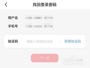 进入找回密码页面,点击【获取验证码】,将手机上收到的6位数字验证码输入到相应位置,点击【下一步】