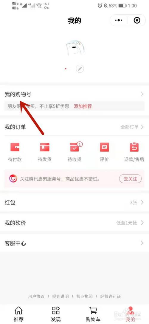 进入我的界面,点击我的购物号。