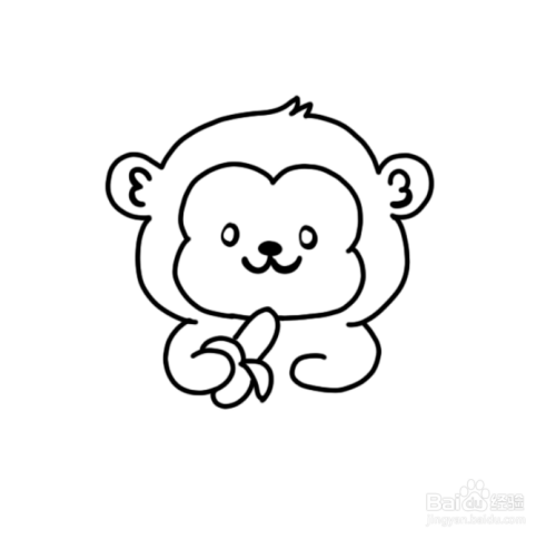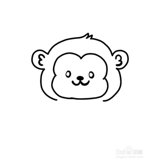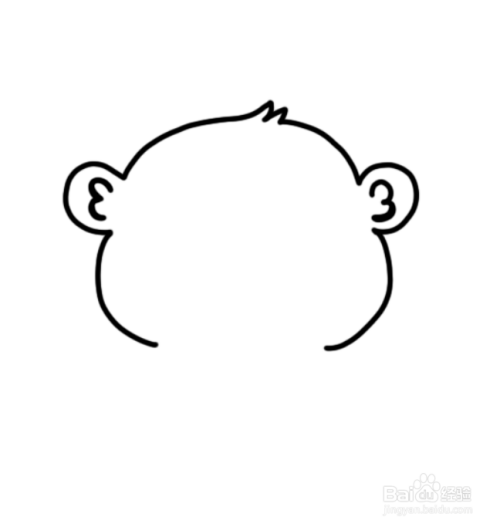 先画上小猴子圆圆的脑袋和大大的耳朵