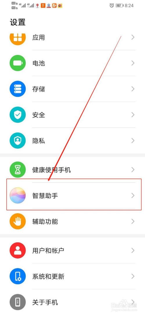 2.在“设置”中,向上滑手机,找到“智慧助手”
