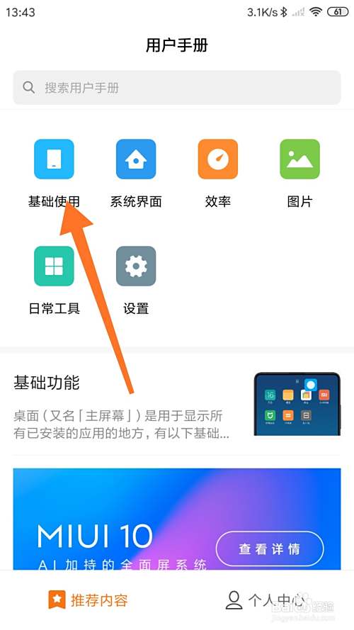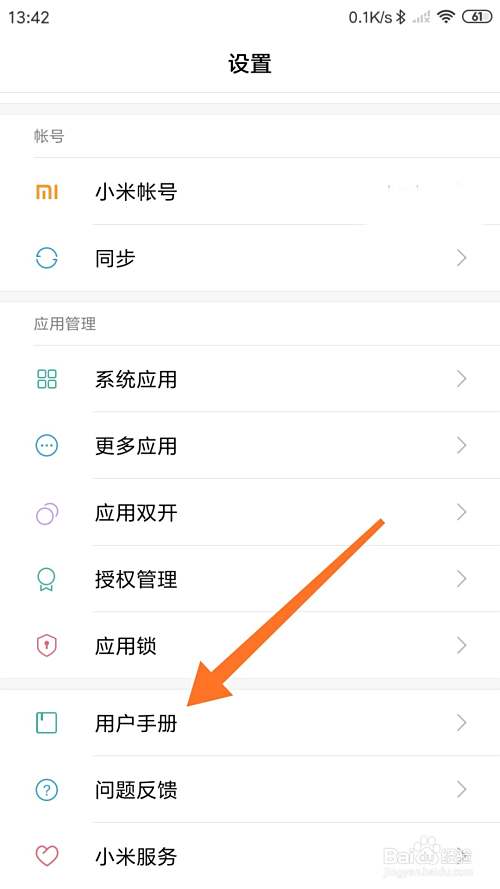 进入设置后,界面下滑到最下方,找到“用户手册”;下边我们可以查看用户手册了。