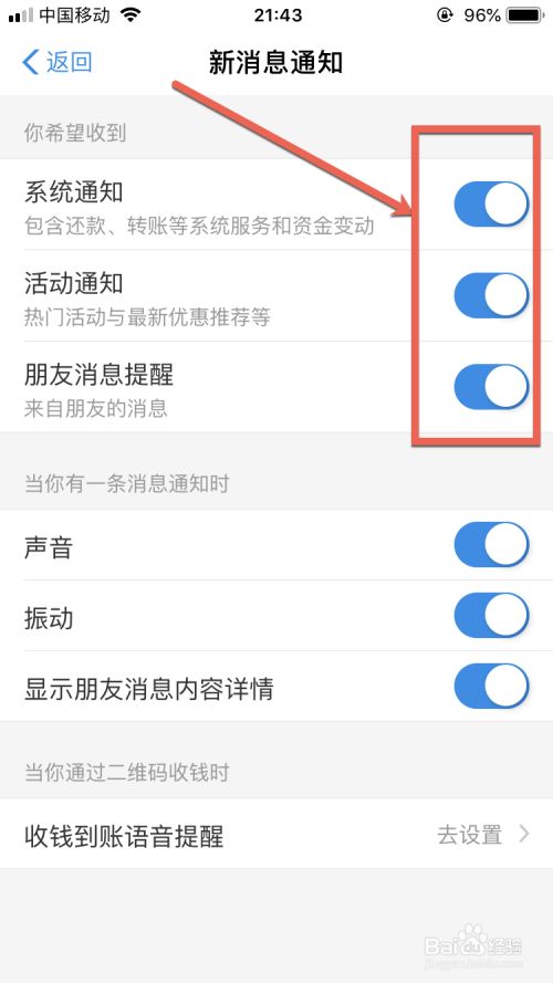根据需要,可以关闭系统通知、活动通知、朋友消息通知等。