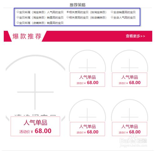 手动推荐:根据自己的想法手动选择要展示的商品,可将爆款或者主推的宝贝添加到关联推荐页面。