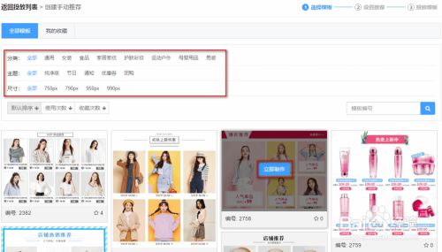 选择适合的推荐模板,可以按分类、主题、尺寸等来筛选;