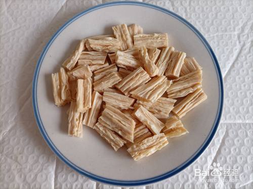 看!泡好的腐竹松软Q弹,把腐竹切成小段,就可以做自己想做的美食了。