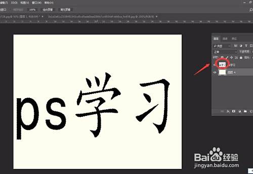 按住键盘上的CTRL键,点击文字图层,注意是点击在画红色圆圈的位置。这个时候出现蚂蚁线。