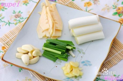 辅料:冬笋,大蒜,葱白,姜,青蒜,洗净待用:
