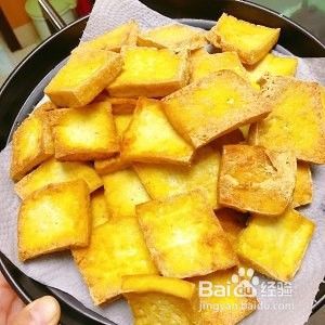 豆腐切片,炸制成豆腐干