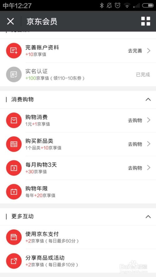 在这里完成这些任务后就可以提升相应的京享值。